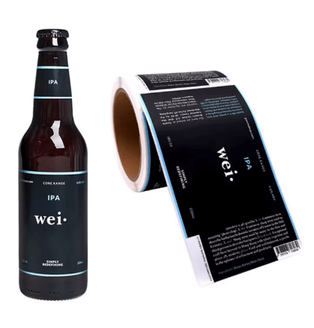 Our custom PET adhesive bottle labels are specially designed for whisky, wine, juice, and beverage packaging, offering excellent waterproof performance, strong permanent adhesion, and high-definition UV printing.
