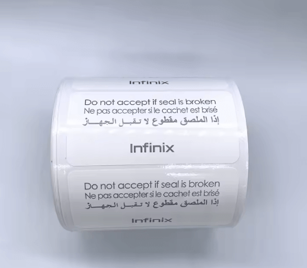 These Custom Printed Private Brand Fragile Stickers are made from high-security eggshell vinyl material, designed to break into small pieces when removed—preventing tampering, unauthorized replacement, or repair of mobile phones, computers, electronics, and accessories.