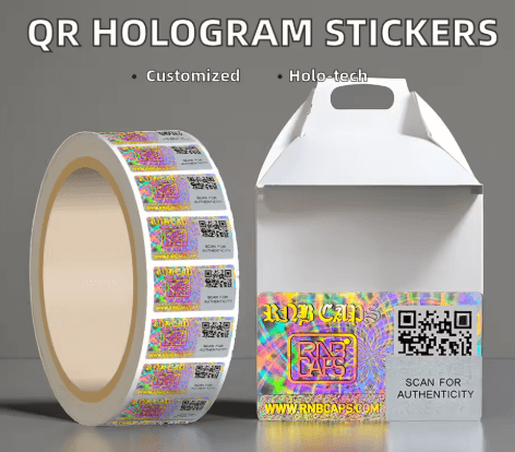 Custom holographic stickers with brand logo and product info